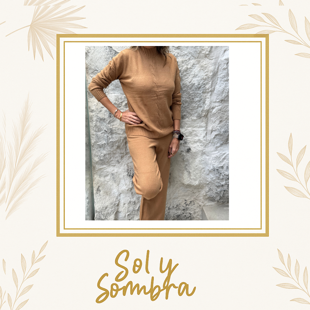 • 🤎 Suéter: cuello semi alto, tejido suave con textura trenzada al frente.